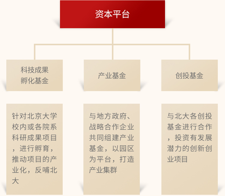 依托北京大学深厚的学术底蕴和人才资源,北大资源致力于建设一流的产学研平台,搭建多领域、多层次的产学研协同创新体系,结合国家和地方的发展需求,推动科技成果转移转化、高新技术企业孵化、高新技术产业催化和创新创业人才培育,为促进国民经济发展和创新型国家建设努力贡献力量。